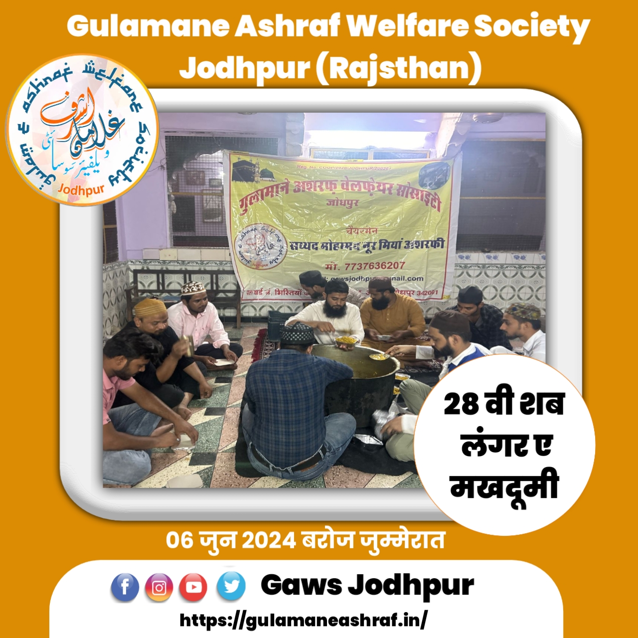 06 जुन 2024 बरोज जूम्मेरात को गुलामाने अशरफ वेलफेयर सोसाइटी जोधपुर के जिम्मेदारानो द्वारा सय्यद नूर...